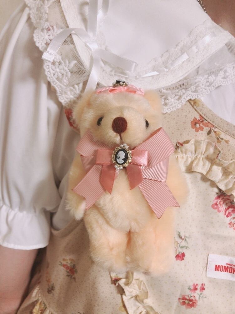 手縫いで作られたクラシックベアブローチ。繊細なカメオのデザインやリボンの装飾がとても可愛らしいです。一つ一つ手作業で作られているので、世界に一つだけの特別なアクセサリーです。